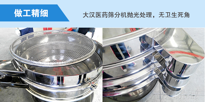 藥用篩分機對于設備加工要求極高,所以大漢廠家在這一方面也是非常重視的,大漢醫藥篩分機選用的是304或316L不銹鋼材質,設備內外經過嚴格的拋光處理,焊接之處沒有毛刺,不會有衛生死角,更加精細。